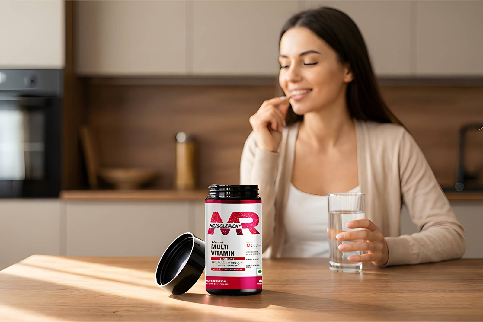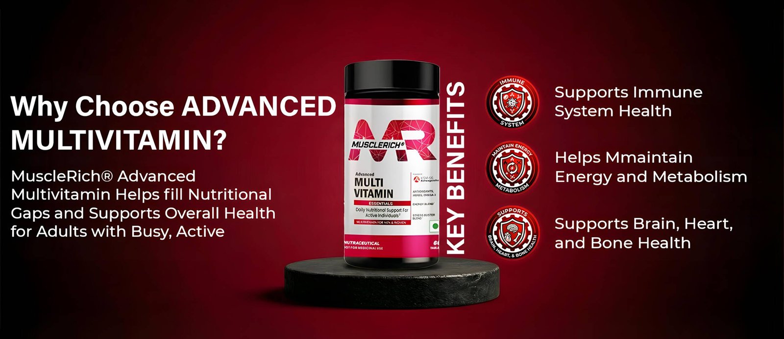 MuscleRich® Advanced Multivitamin is a comprehensive formula crafted to meet your daily nutritional requirements. Packed with essential vitamins, minerals, antioxidants, herbs, and Omega-3 fatty acids, it supports brain and heart function, strengthens bones, promotes glowing skin, reduces stress, and boosts immunity.